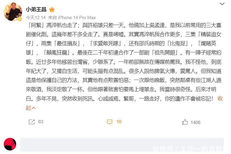 没想到发完这篇悼文4天,冯淬帆便病逝了,令人唏嘘。