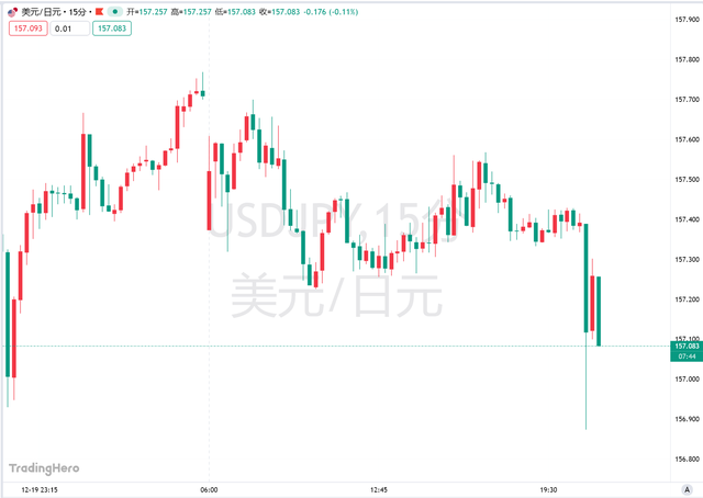 美元兑日元闻讯短线下挫50点,最低跌至156.87。