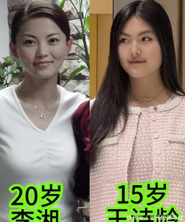 有人对比了一下年轻时候的李湘和王诗龄的照片后,发现基因的力量真的很强大。 难怪都说女儿像父亲,王诗龄确实更像王岳伦多一些,没有继承李湘五官的精致感,反倒是有点女生男相。